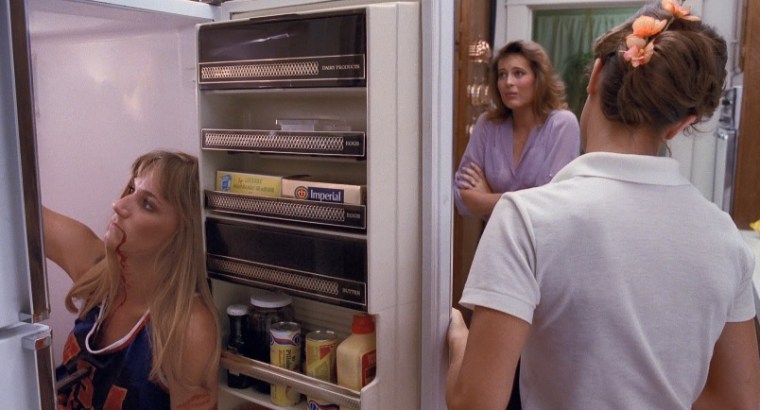 Trish knocks Russ upside the head with a baseball back but it doesn’t stop him too long and he stabs and kills Kim. So Trish runs out of the room while Val is still looking for Courtney. Courtney is still looking for a party. She wants to raid Trish’s fridge to get a beer because she is fucking desperate to be an adult. Now, if only Courtney had actually looked into the fridge, she would have probably grown up a little that night… Because she would have seen a dead body.