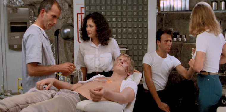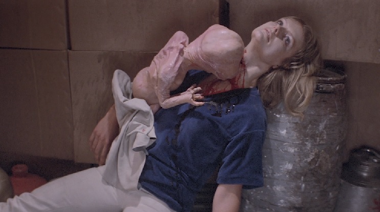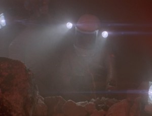 And sure enough, there is something stalking them. Mitch is attacked and decapitated. The creature then disconnects Sandy’s air hose and she passes out. She suddenly sees herself on a lighted table and is terrified. She sees the team’s doctor, Karl, there and injecting something into her. However, this is simply a fever dream she’s experiencing while being alien raped.