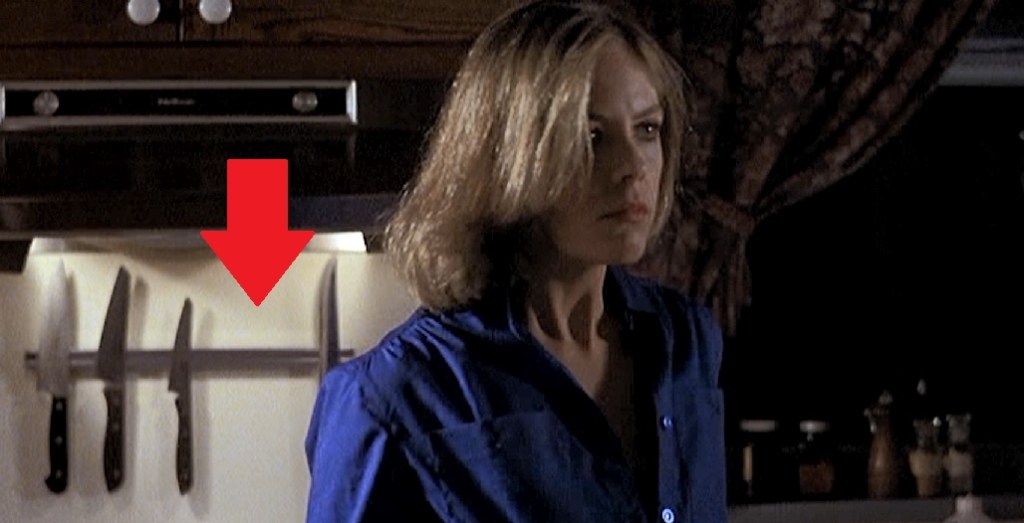 She tells her friend she thinks someone is following her. Her friend thinks she’s nuts and should just watch the very scary movie about a guy following a woman and trying to kill her.