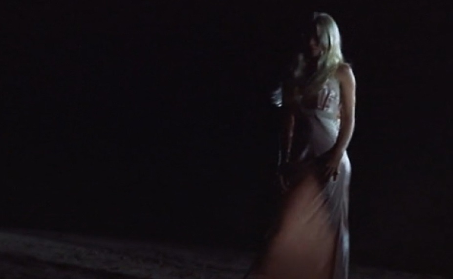 As Cliff and Gloria get a room at a hotel run by the kindly Mrs. Wainwright, she tells the couple about how a legend of three farmgirls have started to scare off travelers. Sure enough, we then see a couple of the farmgirls approaching some guys in the area to lure them into a honey trap. Another guy, simply passing through (which I think is all that goes on in and around Farnhamville), is sent down a dirt road by the gas attendant where he’s run off the road by the visage of a sexy babe in the street.