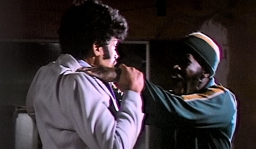 So… Here’s a thing that happens in the middle of this movie. After Godfather stops by an old friend’s school to tell him some bad shit is going down, we go to a party. It’s a party in the middle of the day. There’s dancing, and drinking, and a big pile of cocaine on the soundtrack to Saturday Night Fever. It appears to be a pretty decent time. Then, there’s a knock on the door and a guy comes in and starts kung fuing the shit out of the place. Then this guy comes downstairs and… and he talks like a kung fu movie guy.