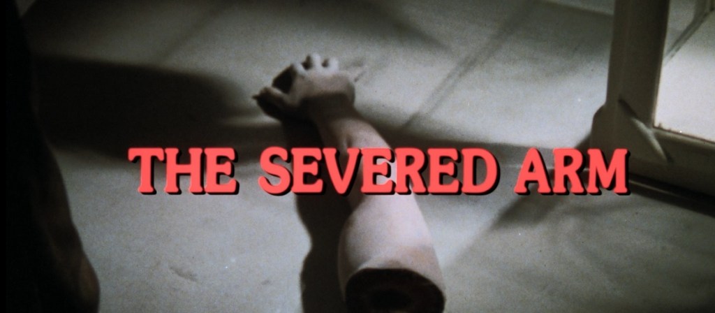 Our movie opens with a one-armed man going into a morgue and chopping off the dead stiff’s arm. At that point, the title comes careening toward us to remind us that we’re aren’t watching Out of Africa. We’re not watching Casablanca. No, we’re watching…