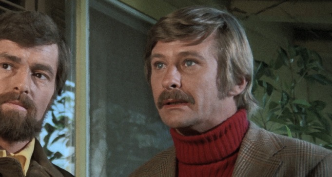 Paul Carr, the actor playing Mark, is the love child of DeForest Kelley and Charles Bronson. Come on, look at that. He’s got the gruff facial expression of Dr. McCoy, the hair color of the good doctor, but the mustache and hair style of Bronson. You cannot tell me that isn’t the case here. And, to boot?