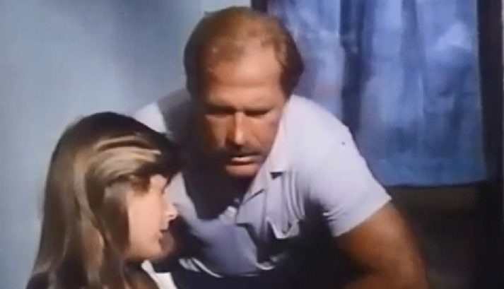 This movie doesn’t wait around for anything like plot, or character development, or no other pussy shit like that. This jumps right the fuck in. We have young lovers at a picnic. The white boy here is trying REAL hard to get this lady’s jean skirt right the fuck off. He says things like, “WOW! WHAT A GREAT IDEA TO HAVE A PICNIC! HERE’S A DR. PEPPER AND A SAMMICH! WOW YOU PRETTY!” And the girl’s all like, “Yeah, sure. Whatever. This Pat Benatar haircut is too cool for your polo shirt, dork. Also… Thanks for the sammich.”