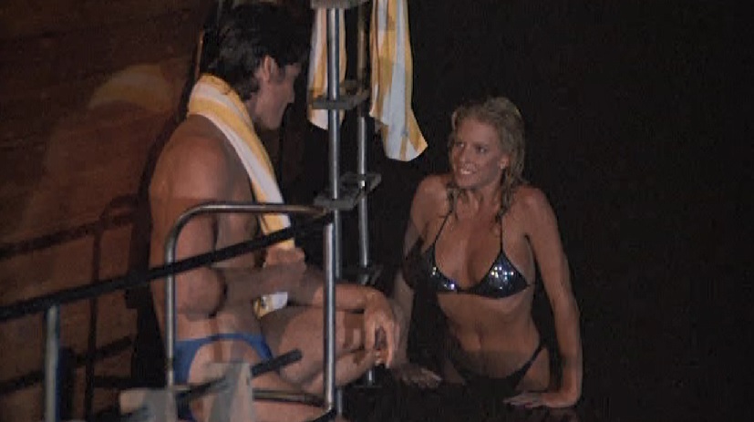 So, with that, let’s dive in! We begin things at the Ala Moana Yacht Club in Honolulu. Immediately, we meet our two primary protagonists, Dona Speir’s appropriately named character Donna and soap opera star Ronn Moss playing Rowdy Abilene.