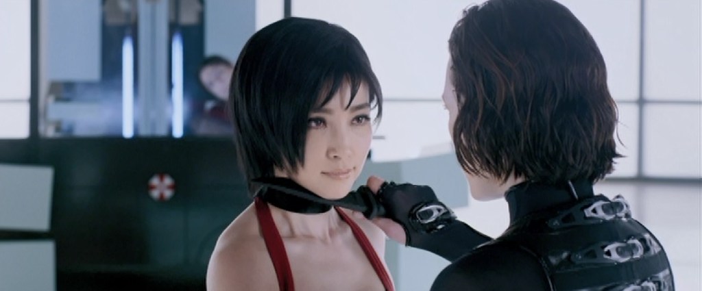 So Wesker is no longer with Umbrella. Sure. Fine. Ada works for him still. Okay. I guess. We never met her before so you could sell me on anything with her I guess. Wesker still has some guys that can do all this army shit for him. Fine. As for who is running Umbrella now that Wesker no longer is? Well, that’s the Red Queen – the computer girl from the first movie. Fine. Whatever. So I guess Jill Valentine and the bad Umbrella army are essentially borgs being controlled by more of a centralized computer program and not, like, a guy…?
