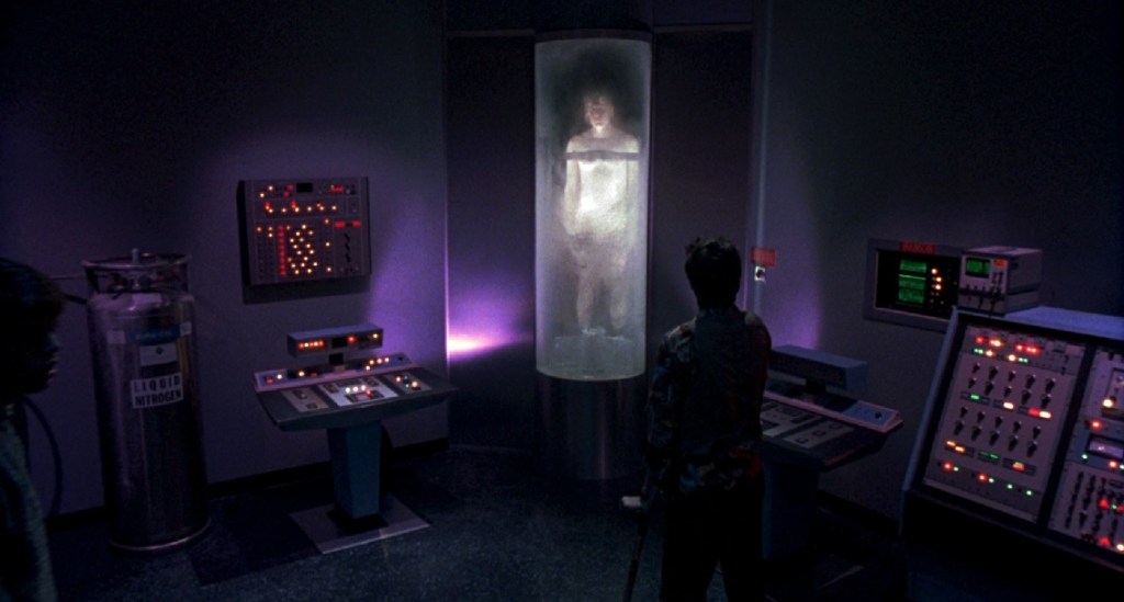 Okie dokie… Chris and J.C. are less weirded out by the crazy machinery around them than they are the guy in the cryogenic tube. Chris initially just wants to leave as to not mess up this experiment. J.C. says there aren’t any other corpses around to take so they might as well take this guy. J.C. explains the whole thing about cryogenic studies and stuff, but as much as he thinks it is cool, he doesn’t care that much to not disengage the thing and try make off with the body. When they are carrying the body, the dude’s hand grabs J.C. and they freak out and run away.