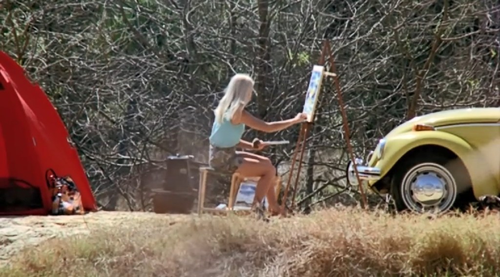 A young couple are neckin’ on the porch. You’d think that maybe they didn’t get the memo on the evacuation, but the dumb kid who looks like a young Beau Bridges clears that up by saying he doesn’t believe the story about a monster. That’s when our monster, still trippin’ balls on cough syrup, comes slashing his way in and kills the boy and starts eating him. Sheriff Lou hears the girl screaming, but, instead of finding her, he finds a haggle of hippies. This leads to the film’s very bizarre musical interlude.