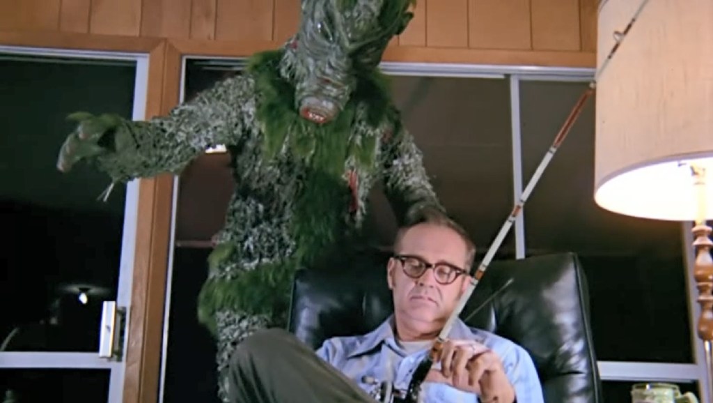 The movie famously opens with a narrator, presumably Dr. Leopold, talking about sargassum, which is an underwater algae, and, apparently, the “weed of deceit”. Now we all know that oregano is the weed of deceit, but I digress. But within the sargassum is the sargassum fish, a “mighty hunter” who hangs out there and waits to… ATTACK! Apparently, we’re going to see this thing eat another fish after unleashing a surprise attack on its prey. This sargassum fish has been an inspiration to Dr. Leopod, and he loves that doofy fish and hopes to be a good imitator.