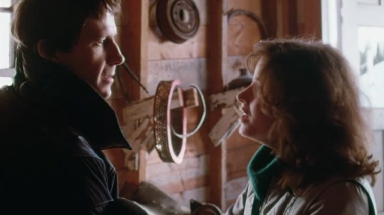 Marty discovers the storm the shopkeeper warned about has hit. It’s gotten quite snowy and there’s no way they’ll be able to leave until morning. Just imagine someone having to come to that realization after being warned by a local that the shit gets back in the winter and then hearing your own girlfriend, who you don’t pay as much attention to as you do the blonde who just wants to do stupid shit all the time, also warn of this. Anyway, Jenny finds a room in the lodge that has a window wide open. When she closes the window and looks out at the storm, she hears someone whisper her name.