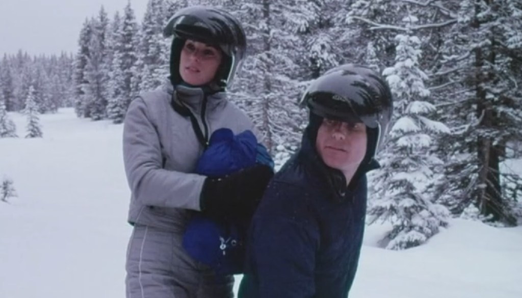 Chrissy gets her way by basically peer pressuring Marty with the whole “I thought you didn’t follow the rules” line. We see that the snow is deep, the trail is long, and there’s a sign that reads this is private property and to be kept out. They keep going and going and going. The snow seems to be getting deeper and deeper too.
