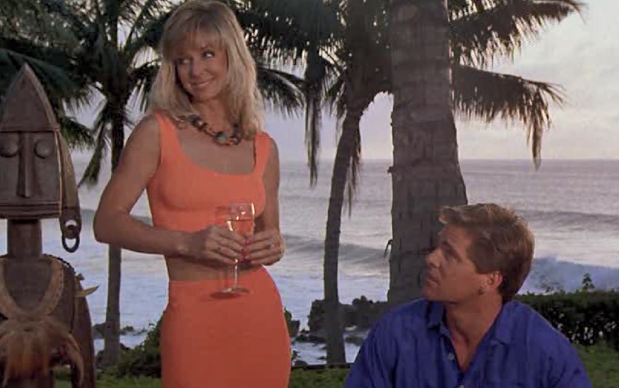 Meanwhile, on an island getting ravaged by a storm, a hospital is out of some kind of serum. Their only hope is to call Molokai and get more flown out immediately. Shane Abilene calls up the girls and they spring into action! Patty goes to pick up the serum from the hospital on Molokai. Shane heads from Honolulu to Molokai to meet up with Donna and Taryn before they head off to the Marshall Islands. This the most exciting scene featuring picking something up and dropping it off someplace else for it to ultimately be flown to a third location I’ve ever seen. Then, as Shane meets Donna, it’s Double Entendre City as they go back and forth about being able to handle a big gun.