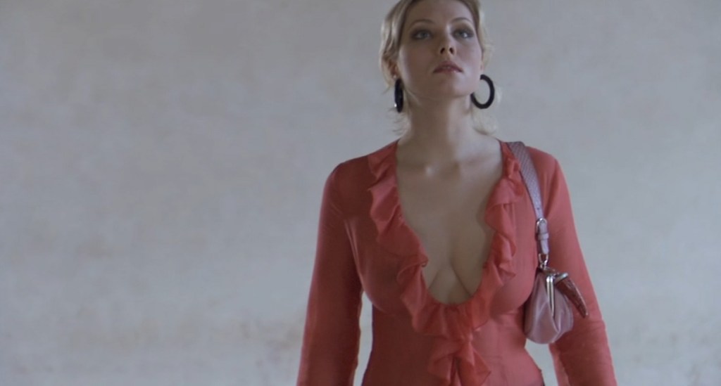 That seems pretty straightforward, yes? It has a little flavor of that Black Angel story. There is a little bit of a difference though. Jimskaia is quite attractive, much like Black Angel’s Anna Galiena. Both women have a steamy sex appeal that I like. However, they are on the opposite ends of their sexual prowess. Jimskaia was in her 20s in this movie and Galiena was in her 50s. Where Galiena was probably scooped up by her aristocratic husband in her late teens or early 20s, Jimskaia’s character likely married her college sweetheart or something kind of similar of a set up where two younger people would meet.