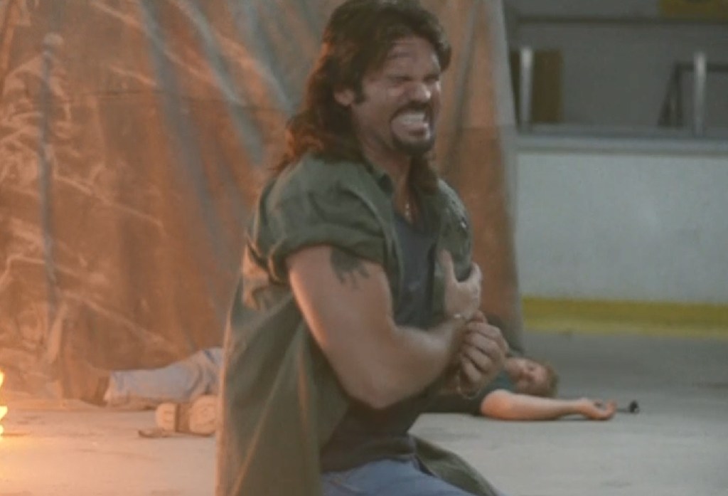 But yeah, Kate picked up a gun from a dead goon and she kills Rolland. That basically only leaves Riotti. Radical Jack and Kate argue about her getting out of there while Riotti just slinks around. Riotti is able to sneak up behind Kate and grab her and put a knife to her throat. To show Radical Jack he’s serious about getting a chance to kill the woman he loves a second time, he slices her arm. Shit is getting pretty damn tense around here, kiddos.