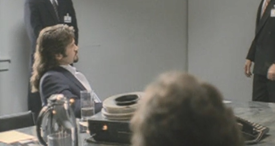 While on a stakeout watching bad guys, Radical Jack has another sepia tone flashback of his family. That ends when he sees Rolland show up at the house he’s watching. There’s a whole conversation going on has something to do with weapons. The main bad guy, played by Buck Flowers, is in arms dealing. But more like illegal arms dealing. They get guns and missiles and they sell them to other guys who need guns and missiles. All from this small town.