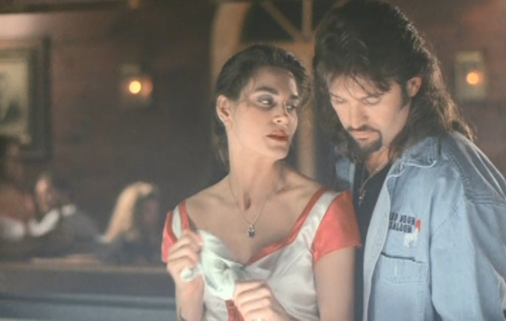 However, it’s getting pretty close to Radical Jack’s shift at the shitkicker bar. He shows up and the two waitresses, Dedee Pfeiffer and a sexy brunette, are talking about how glorious that new bartender’s hair is. Well… In so many words. They are talking about how he hasn’t said a single word to the sexy brunette all day. Kate also tells sexy brunette that she’s kicked Rolland to the curb. Sexy brunette warns that Kate needs to be careful because Rolland? Well, he’s an insane person.