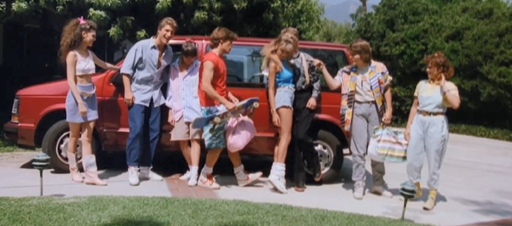 These friends have just graduated high school. John’s family owns a furniture store. They plan to party, get drunk, and do sex. As they unload the van’s supplies, Shawn and John see the new dock worker for the store, a guy named Fred, who is an ex-convict. Shawn finds the guy, and his snake tattoo on his hand and wrist to be creepy. John says he’s an alright guy.