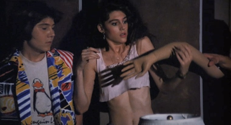 For what it is, Hide and Go Shriek is really not that bad. There are definitely some silly things like how John brings everyone to party but sets up so many rules that all the partygoers can do is fuck. The sexy dance that Judy does to make her first time having sex really special is nuts. There’s also that whole element of Bonnie requiring people to all eat at the same time like a crazy person. Also, Bunky Jones is acting her tits off this whole movie. Here’s a great example: