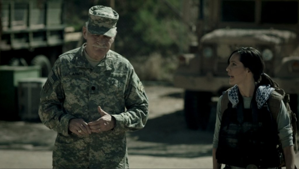 Back in the more important story, I see Vic is not treating Bashir any nicer. He wants to know just who the hell the woman is with the baby. I think Vic is willing to kill Bashir if he doesn’t cooperate. Anyway, remember that Abdul dude? He’s the Taliban leader. The woman is the daughter-in-law of Abdul. The baby is Abdul’s only grandchild. Vic and Vasquez know this isn’t over. The attackers are going to come back.