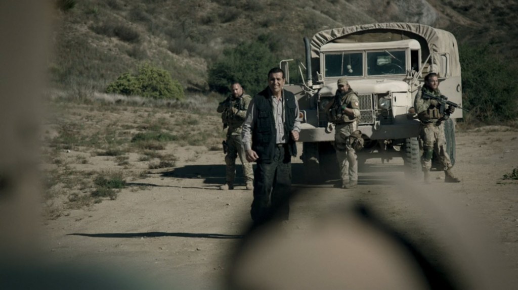 Vic is sent to assist with a broken down supply truck just kind of hanging out however many “clicks” out from the base. I find this to not be at all what Vic should be doing which is saving the two guys that got left behind or stopping this Abdul guy. Also, it’s very possible this rescue mission is a set up anyway. Considering the star of the movie is just hanging out in a different location altogether and we know who the bad guy is, it’s possible this movie is starting to lose its own thread on a cohesive plot.