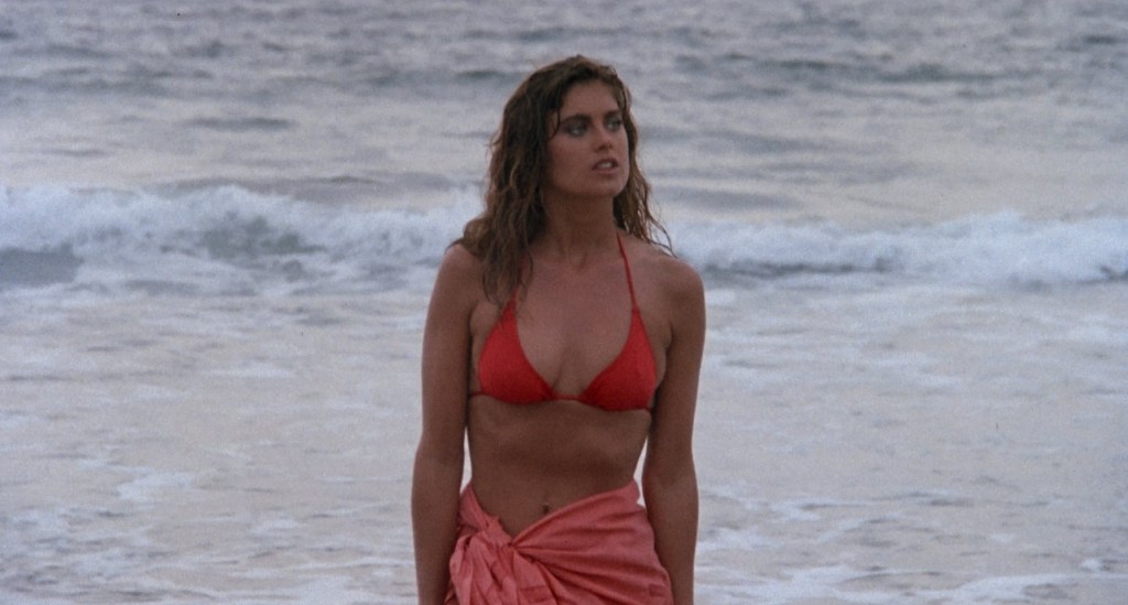 I like that the movie opens with the Cannon logo and then goes black for several seconds. It makes me think that the movie decided it just didn’t want to show me what it’s got. But then we go to the beach. The chyron says “Once Upon a Time…” Great. This is a fairy tale by way of Cannon. I’m sure this is right up there with the great Disney animated films from my youth. Anyway… At least the movie makes with the goods instantly.