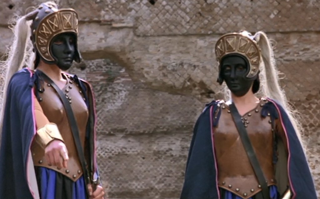 I mean, Sonia Viviani, the lady playing Glaucia, sure has nice things to take a look at. Sure, I like her tiny skirt and her crop top or whatever that would be called. Does she have to be necessarily posed like that? I’m guessing someone, maybe even Luigi Cozzi himself, said it was necessary. It had to be like that.