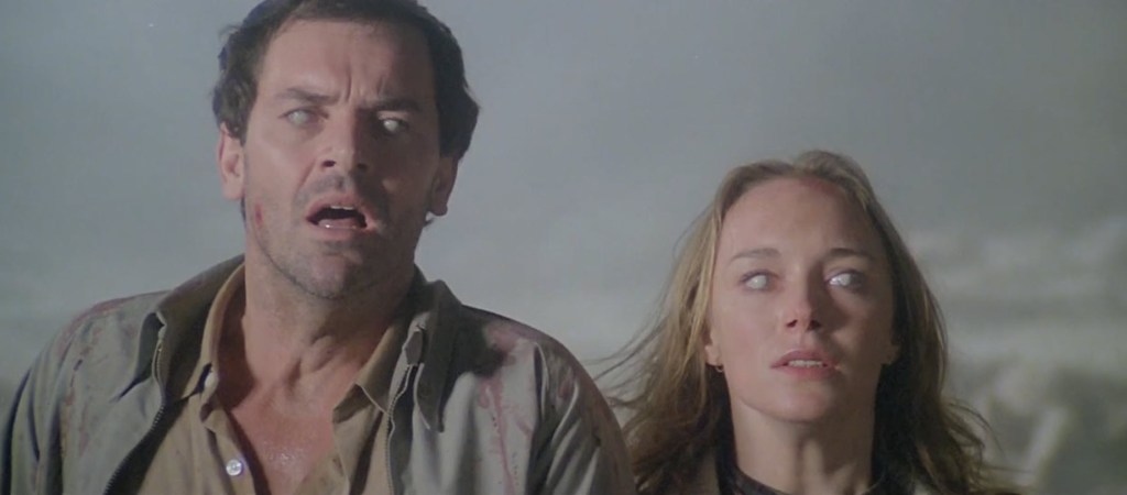 This isn’t just the second of the Gates of Hell trilogy, but it’s also the second of the Catriona MacColl trilogy of Fulci flicks too. In this, she plays Liza Merril. She’s inherited this Louisiana hotel that happens to be pretty much where the titular beyond rests under. MacColl would go on to say this was definitely her favorite of the three movies. However, she was not Fulci’s first choice. Actually, he wanted to go back to his Zombie star, Tisa Farrow. I’m not sure what made the choice to be to bring MacColl back instead, but I’m glad she is here. I like the idea of this loose trilogy having the same star – even if she isn’t the same character. Joining MacColl is another Fulci alum, David Warbeck. Warbeck had just appeared in Fulci’s take on The Black Cat.