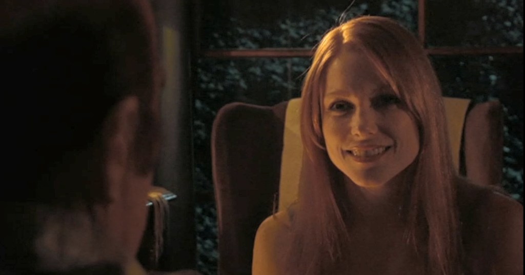 So, in this first scene at the nursing home, Mike does say that he’s there for Reggie because he looked after him after Jody died. Mike also reveals Reggie has early onset dementia. When Reggie says this is just another one of “his tricks”, Mike just shakes his head. Reggie was brought there after being found roaming the desert. Mike asks for Reggie to tell him the story about what he thinks is going on. So, Reggie does. He, being the horniest guy in all of horror, picks up a redhead whose car is broken down on the side of the road. She introduces herself as Dawn. Dawn is hot.