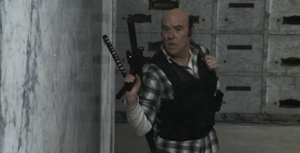 This whole scene is one of the issues with Ravager. In one regard, it does kind of stay up with the general comedic tones that past entries have used. That’s okay. No issue with the lighter stuff. But this scene comes across as farce. Plus, it’s not exactly shot well. This movie is very clearly shot on digital video.