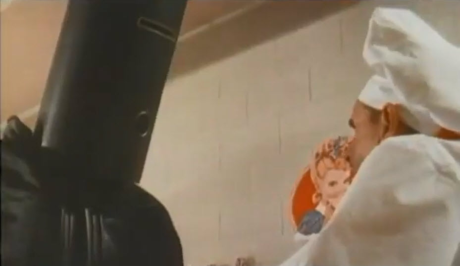 He confuses an old baker for being the hero Captain Starfighter. Now… Hang on a second. If an old guy that dresses anything like a pastry baker is able to defeat you, you might be in the wrong business, Buckethead. Anyway, this old Chester guy gets interrogated by Lord Buckethead and Chester has no idea what he’s talking about with these transmissions or plans. He does get all his fritters confiscated when it appears Lord Buckethead is curious about the pastry.