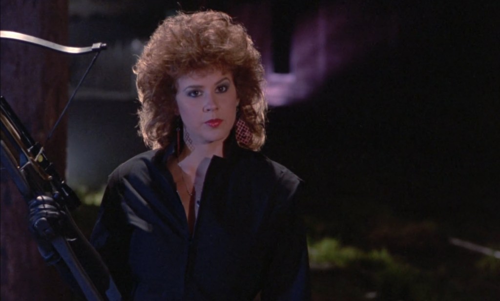 Savage Streets is kind of a peculiar movie. It wasn’t particularly well liked upon release, but it has a small cult following. What likely gives it that following is that this is a pretty implausible movie from point A to point B. There’s no real reason why Linda Blair’s character would have a sexy superhero-style catsuit to wear for her revenge. There’s no real reason why she would be proficient with a crossbow – or even own one for that matter. While there is a bit of a Chekhov’s Bear Trap scenario, with the bear trap getting focus in the early part of the movie as the girls were doing their thing on the streets, there’s no indication that she should even be able to obtain such a thing. Those things also gives this movie its charm.