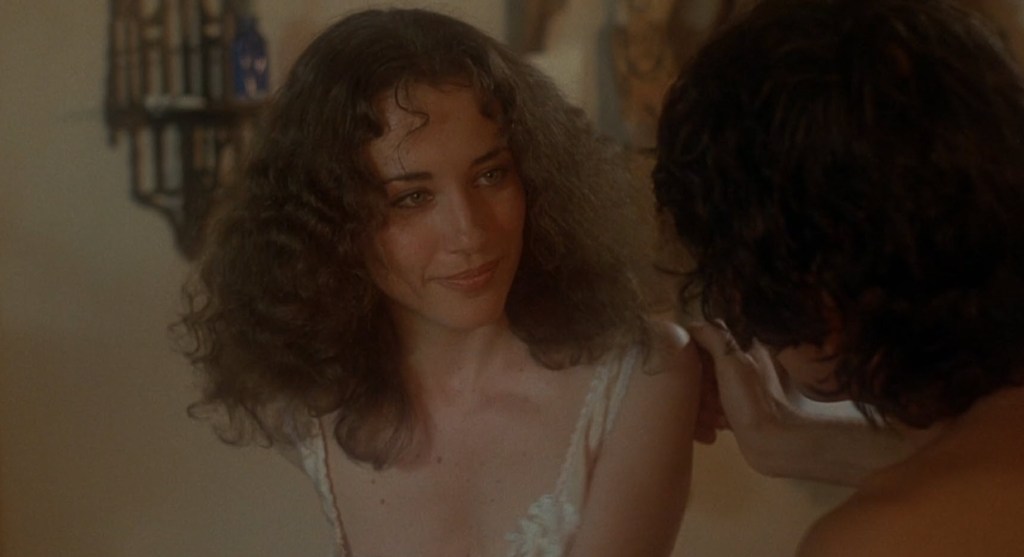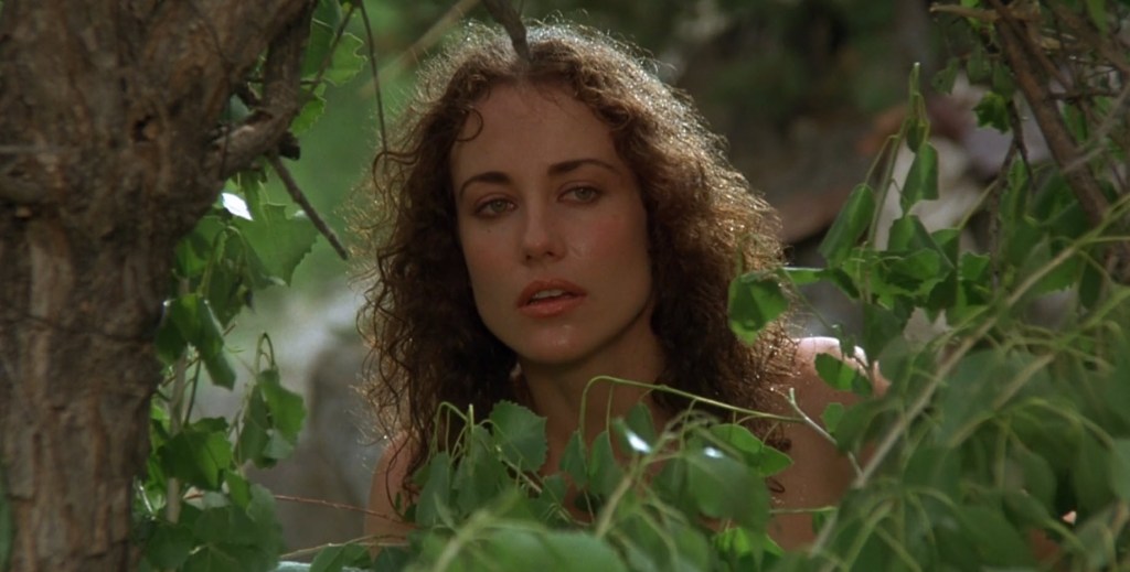 While he bathes in a little pond, there’s a comely lass bathing too. This beauty is Claire Cygne. She’s played by Belinda Bauer. Funny story about Bauer. When I was young, I remember watching Robocop 2. Bauer was kind of this new blood at OCP. She’s brought in as a psychologist to help develop the new version of Robocop to help mediate the struggles felt by a police strike in Detroit. Despite her obviously being morally bankrupt, young me found her smoking hot.