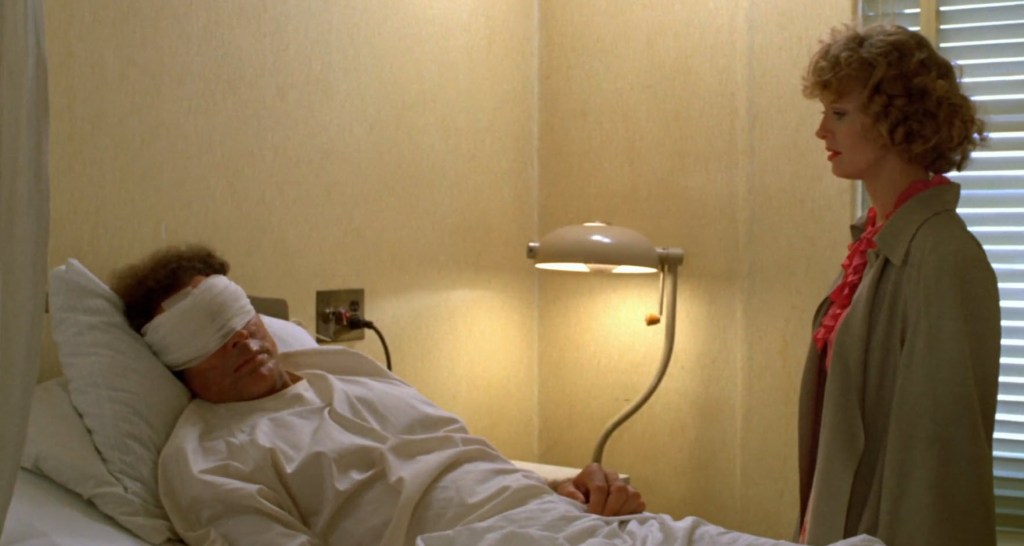 Betty does what Johnny asks. She goes to the farm and tells Kyle that Johnny’s been blinded by acid having been thrown in his face. Kyle doesn’t say much, but she begs him to come. She even brings up that Johnny paid him well for the last favor. That convinces him to get in Betty’s car and go to town.