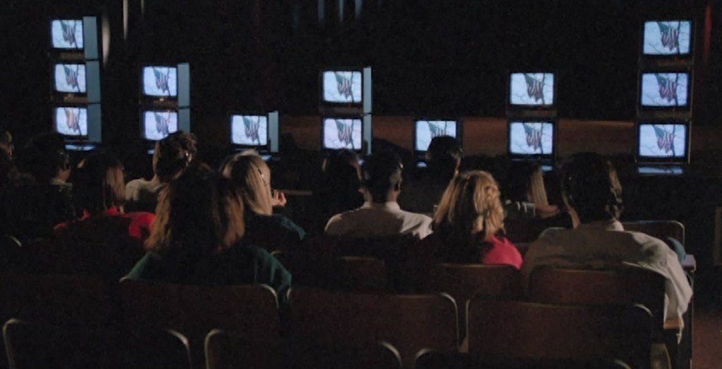 We transition to the Kant Institute. It’s a technological institute where a terrible incident took place previously. A higher up at the college is teaching a special class, but he’s doing it by way of appearing on several TV screens in front of a relatively select number of students. He’s showing them images, and asking individuals what they think of what they are seeing. It ends up creating something of a vibrant debate among members of the class. One mentioning a homelessness issue that he wouldn’t so much want to end as much as obliterate so that it can’t happen again after it gets solved. Another mentions that the homeless should just learn to get jobs or be left behind. Another student mentions the role of God in our society and asks the philosophical question if the United States is God’s tool or if we created the higher being in a way that makes God a tool for the country.