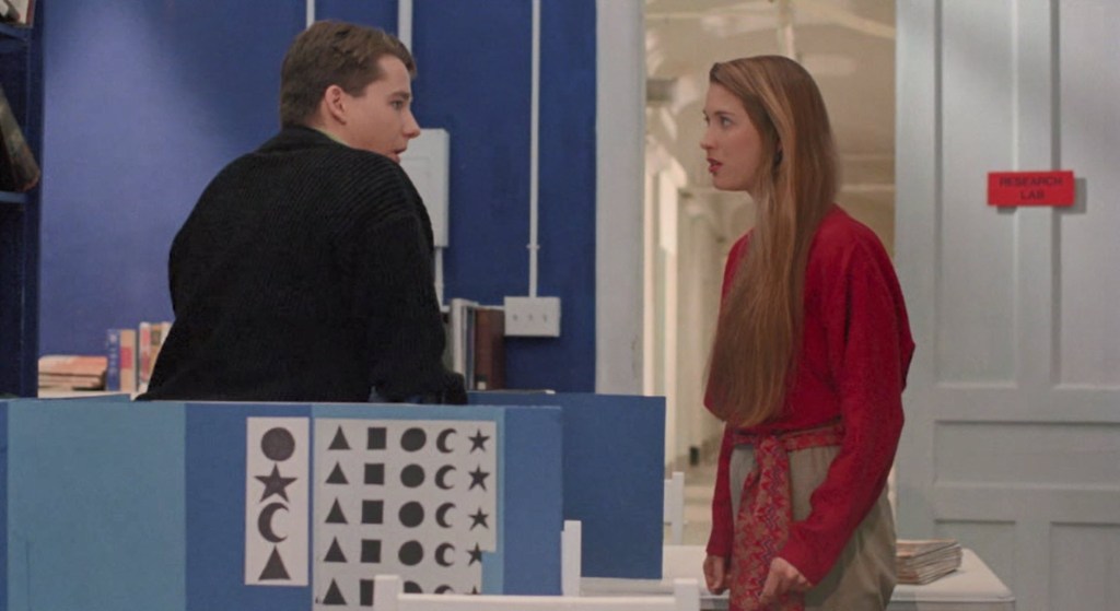 Shelly seems to be working on a project that seems to do with geometric shapes. She also seems to be consistently seeing images in her head of a chapel on campus where that terrible incident happened 20 years prior. Joel, a really good friend of Shelly’s, heard about a creepy guy who hangs out by the chapel. She says that she’s seen the guy but she doesn’t think he’s a threat to anyone. Joel says that he heard that a professor at the school used experimental drugs on the students to enhance their minds. Being that was the late 60s and early 70s, this doesn’t surprise Shelly one bit. However, the two kids are not alone in the research lab as Robert is watching the kids from behind some shelves.