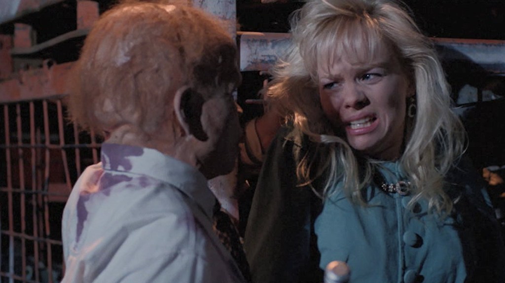 Generally speaking, a lot of my complaints go beyond nitpicking. There’s a serious issue not with big things like tone or acting or effects. All of those things are perfectly fine or serviceable in this movie. But things get really disjointed in the editing and the spatial stuff. I mentioned many times over in this review that there are curious cuts and scenes pick up in very strange places where it feels like we missed something or something was missing that would indicate why two characters are in a specific place. Maybe it isn’t so much that they couldn’t do any reshoots or ran out of money to finish the movie. It’s possible editing just had to cut the movie down to as close to 95 minutes as possible. There is a version of the movie in standard definition on the Vinegar Syndrome release that is a re-edited version by the director. However, it’s roughly the same runtime as the remastered, officially released version. Possibly it could rearrange some scenes, but that wasn’t really my issue.