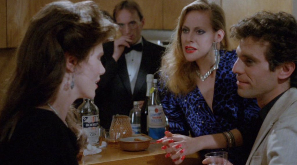 So I think we see the big reveal here, right? It’s clear there some sort of occult business going on here. Each room has some sort of different depraved shit happening in it. Rita knows either Bob or Monica. Everyone wants Cathy to join in on their batshit sex stuff (or maybe it’s batsex shit stuff?). Bob is screwing around on her. She eventually finds out that Bob and Monica are indeed a couple and that he’s been playing her. Something is supposed to happen at midnight, “when all hell breaks loose” as he says.