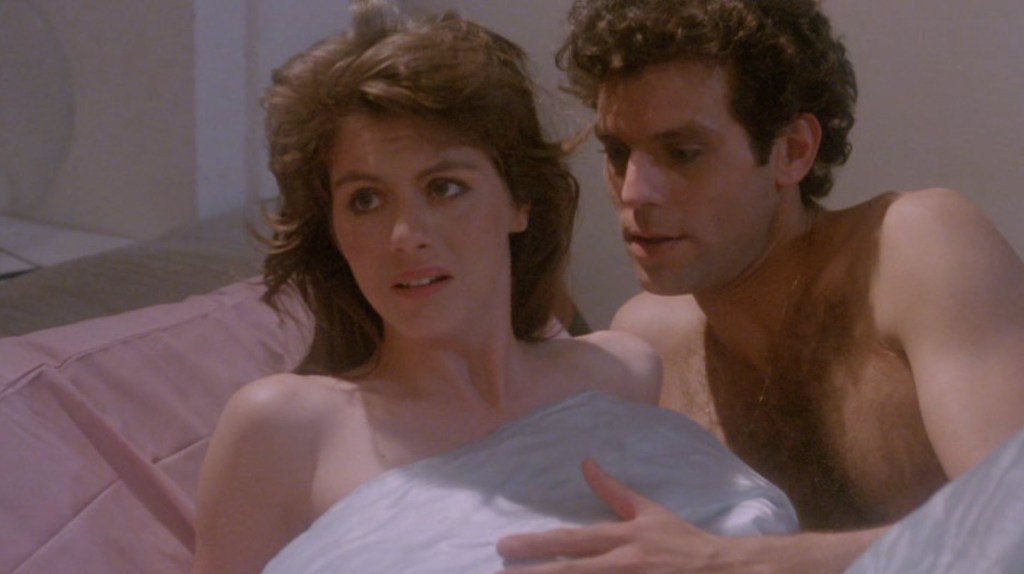 Apparently, it wasn’t that big of a deal. That night, Bob tells her that she’s been working too hard, and she jokes that they probably just think she’s crazy. Then they fuck. Cathy (played by Christine Moore) is all tits out and shot like she’s in a porno… which makes sense because Roberta Findlay did make pornos. I guess seeing a little ghost that’s followed you for the last many years is not that big of a deal as long as you are getting a big dose of Bob’s diiiick.
