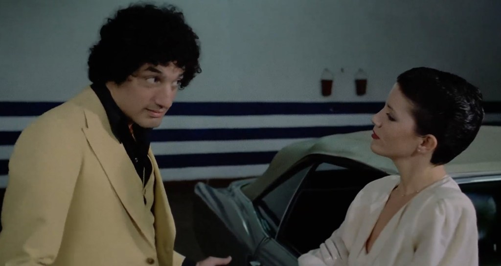 The movie launches right into David Hess, as Alex, driving through New York City. As he drives along, he sees a cute blonde with a short haircut. He begins honking at her and trying to get her attention, but she doesn’t really seem to pay him much mind. He ends up driving quickly past her and then cuts her off to force her to stop. He runs out of his car and gets into the passenger side of her car. Apparently they saw each other at the disco previously and he wants to know if she remembers him.