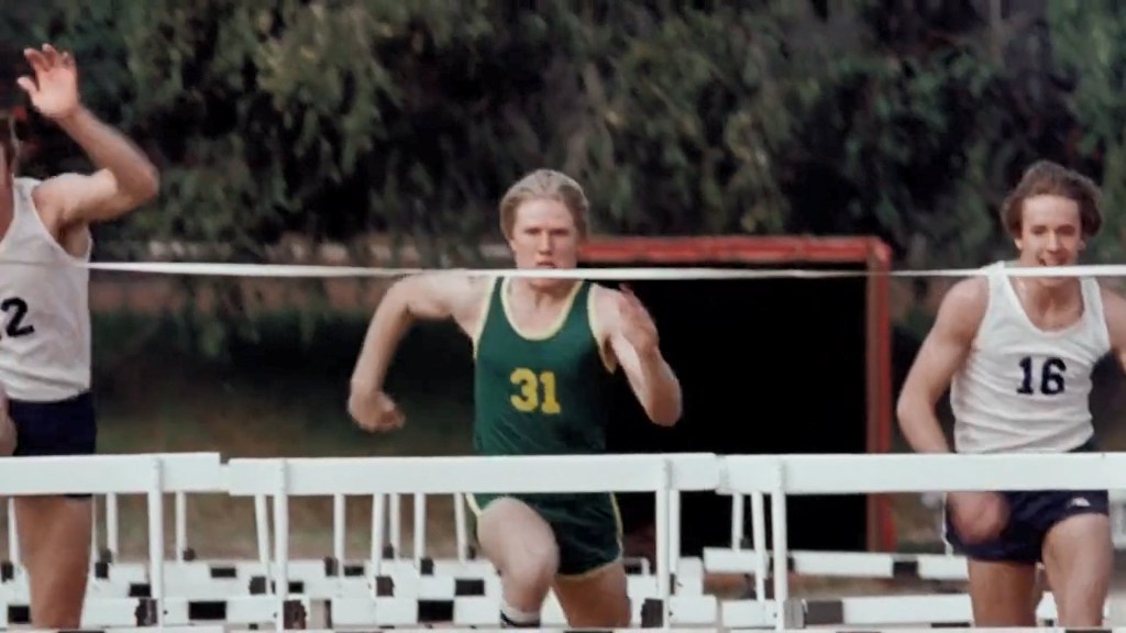 All this is set to some sweet late 70s/early 80s style rockin’ soundtrack. The editing is also insane. It cuts from track and field to the crowd to coach Christopher George to gymnastics to a member of the boys track and field team and a member of the girls track and field team making out. I… I think it’s a member from each team. Style of hair and body shape during this era can sometimes make it hard to tell if it’s truly a hetero group or if this movie is shockingly progressive for 1981. The editing, the music, the curly hair and feathered hairdos are nuts. I think we’re in for a treat here, folks.