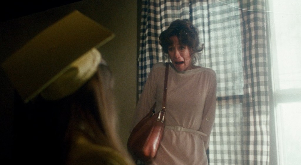 Anne comes home where her parents are weirdos. Her mother seems to be almost overly happy despite her other daughter being dead on a track just some months ago. Her father is a fuckwit who bitches about her being home from the Navy after she sticks up for her mother when he says something shitty to her. Turns out that Laura had insurance money that paid out to Anne. She also left her with a trophy that is going to be given to her at graduation, but she doesn’t want to keep either. A couple things of note, her suitcase has a gray workout sweat suit and black gloves. She also smashes a picture of her sister’s track and field team. Also, there is a giant, sweet ass poster of the Bee Gees on the wall of Laura’s room.
