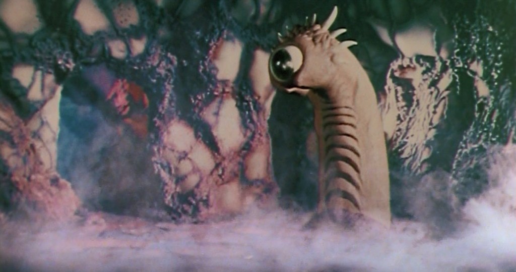 For me, the real treats of the film belong to the general set design of the movie and those wonderful stop-motion creatures that popped up throughout the film. As for the design of the film, it really looks like they went back to those classic sets of the early days of sci-fi films and just reused them. They possess that kind of charm. The monsters were expertly animated. Honestly, they really look great. Surely that cost the production a lot of money, but it pays off big time. You had penisauruses, that bug creature, and the giant Porno God that I really do think was voiced by Craig T. Nelson.