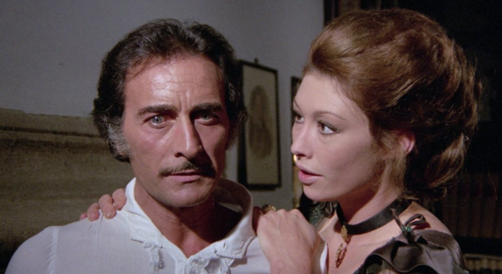 We are not shown Barbara’s death. We’re not shown Giordano’s ultimate fate either. I mean we see Giordano thrown from his horse but we don’t really know why. It’s almost like these ideas were tossed in at the absolute last second and they just didn’t film these things. I can’t possibly suggest anyone watch this movie. Connective tissue is missing. It doesn’t feel like the movie has any cohesive linear narrative. In fact, I can’t even recommend this movie as an experimental movie. It’s bad. It’s barely sexy in the moments it’s meant to be sexy. We don’t really ever get anything deeper than Lionello is in love with his sister to help flesh out his character. It’s a very strange, but very bad, movie.
