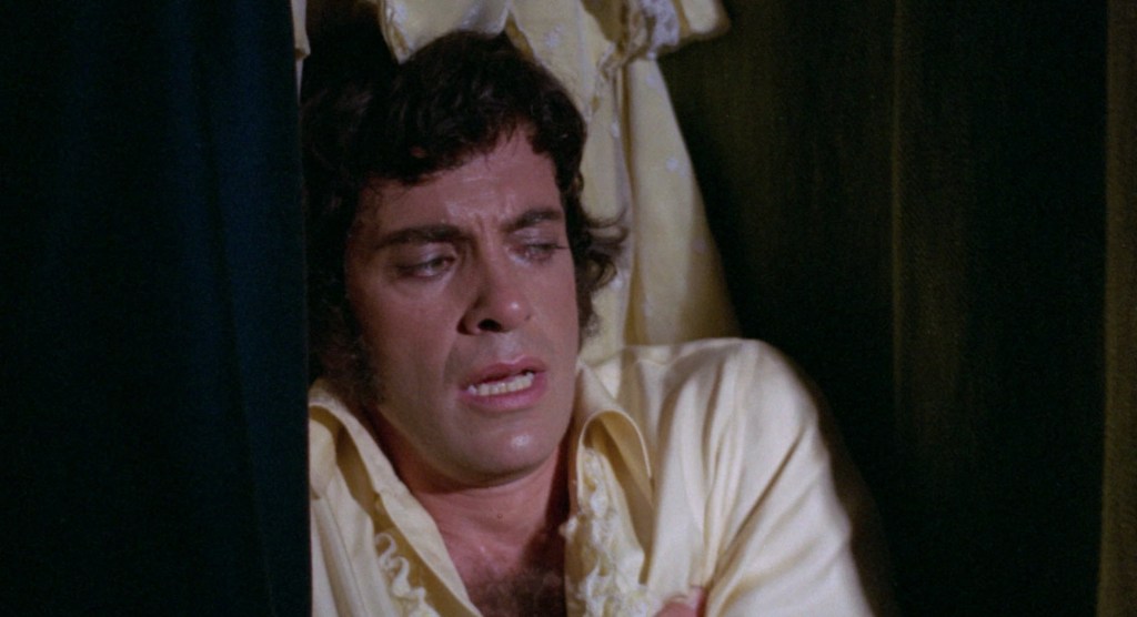 Then, smash cut to Lionello in Barbara’s closet and peeking at her and Giordano making love. I’m not kidding. It’s as sudden and jarring as a smash cut that takes the movie there to the closet. No explanation as to how he got to her closet before they come into the bedroom or anything. He was just in there listening to them screw each other.