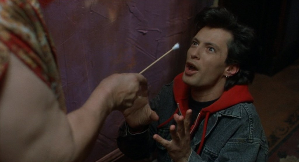 This last remaining teen goes by John Doe. This is mostly due to him having a bad case of amnesia when he does return to the land of the awoken outside the city limits of Springwood and he’s not sure who he is or why he’s there. In his dream, he goes to get a bus ticket to leave town and it’s vended by none other than producer and New Line Cinema head honcho Robert Shaye.