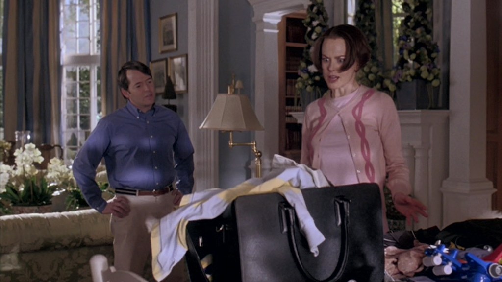 One more thing I want to comment on that kind of ties together some of what was written above. Originally, Broderick and Midler’s characters of Walter and Bobbie were set to be played by John and Joan Cusack. Joan Cusack worked previously with Oz and Rudnick on In & Out which garnered her an Oscar nomination in 1998. She also was in Addams Family Values by Rudnick. If we think about the Bobbie character, previously played by Paula Prentiss, that’s actually pretty good casting. The siblings dropped out due to their father losing his battle with cancer. That’s what brought in the replacements. It’s not that I think Midler can’t play the Bobbie character (frankly, anyone could play Walter which lends credence to Broderick’s complaints about being an uninteresting character), but I do think her verbose personality works, however, she’s a little too old and not what I would picture for the role. Joan Cusack is a much better match for the role. If the movie had been made in the 80s or maybe early 90s, perhaps Midler would have been a decent choice, but still… I would’ve liked to have seen Joan Cusack’s performance.