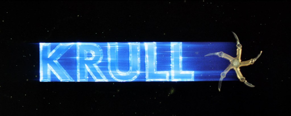 This movie really did try with its whole ass to be a big-budget box office hit. You have space credits. You have a spaceship that comes to the planet of Krull. You have James Horner music that has echoes of his marvelous Star Trek II: The Wrath of Khan score. I’m sure I’ll be highlighting the aliens, the Beast, and the various other creatures that inhabit this movie.