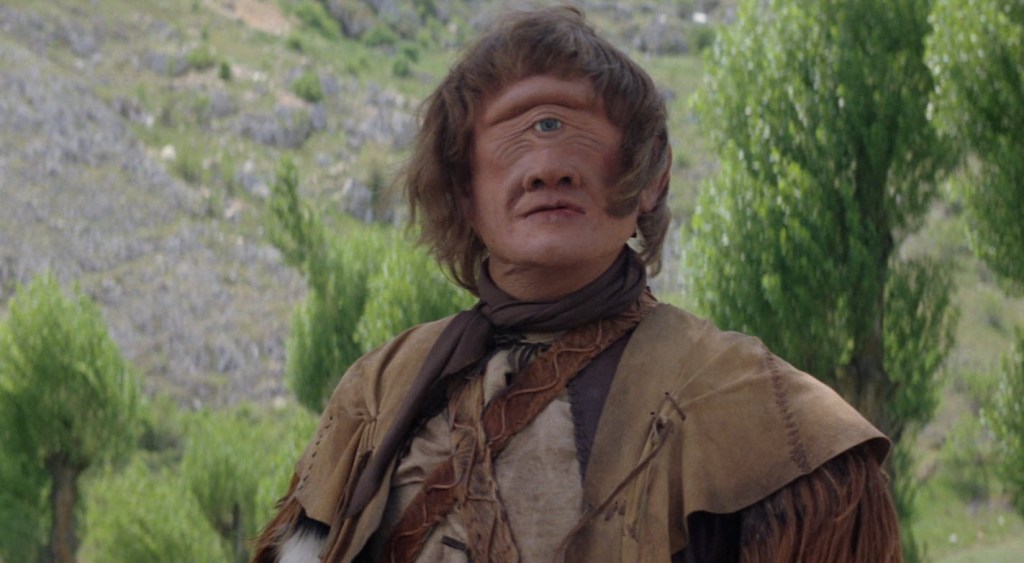 That ogrish cyclops that Ergo saw earlier eventually becomes the final member of Colwyn’s army. He’s Rell. He’s one of the more memorable things about Krull. He’s not a monster like Ergo thinks he is. He’s kind, and he kicks ass. he does so by tossing a large trident at bad guys. It may not be a Glaive, but a trident is a pretty good weapon.