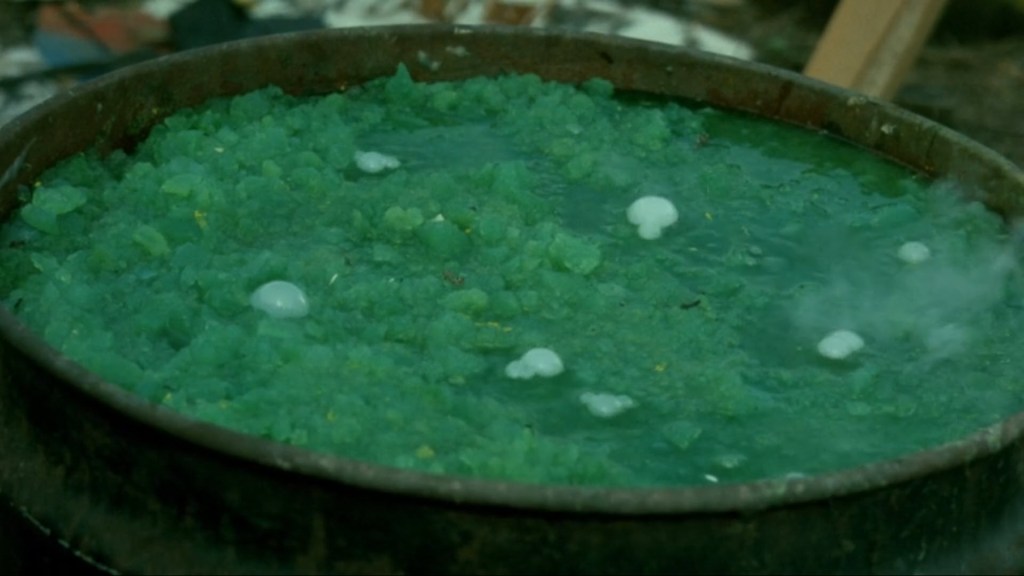 This is an amazing sequence. Okay, sure, it starts off funny. Julie tries to sweet-talk Melvin. And him walking with a little extra pep in his step with his tutu and mop is great. Then it turns into a horror movie as he’s laughed at and chased out onto the street. But for him to get to the street, he had to jump out and into that barrel of toxic waste. No one can touch him. No one can help him. It’s such a well-constructed sequence of events.