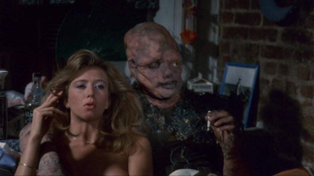 The movie opens with a narrator telling us about New York City. It’s the town in which movers and shakers and all that shit run commerce and whatever. It’s a great city! Even more so because this is dirty as fuck New York City. This is 1980s slimy-ass NYC, baby! This is also highlighted by our narrator. For, you see, the trade-off for all that great commerce and metropolitan whatzits, there’s pollution. Green toxic sludgy pollution.